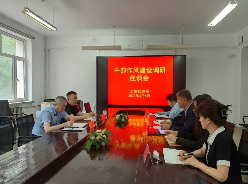 为扎实推进学习贯彻习近平新时代中国特色社会主义思想主题教育,进一步强化基层党组织落实全面从严治党主体责任,扎实推进学院干部作风建设,6月6日上午,学院党委委员、纪委书记崔海涛同志,学院纪委副书记、纪检监察处处长鞠蕾同志到工商管理系开展调研,深入了解干部作风建设情况。工商管理系班子成员、部分教师代表参加调研座谈。